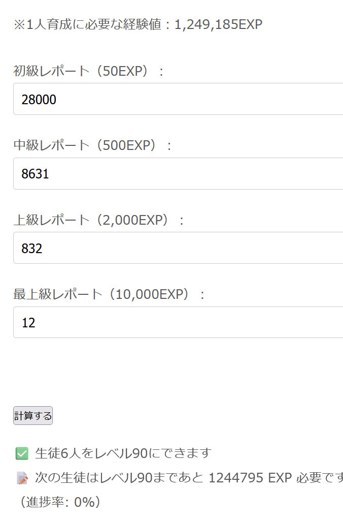 ツール, ブルーアーカイブ【ブルアカ】レポート所持数を入れると何人をレベルmaxに上げられるのか、紫レポート何枚換算なのか教えてくれるツール Tanka-Carbon / 2025-05-10 いまのレポートの所持数だと、生徒何人をレ