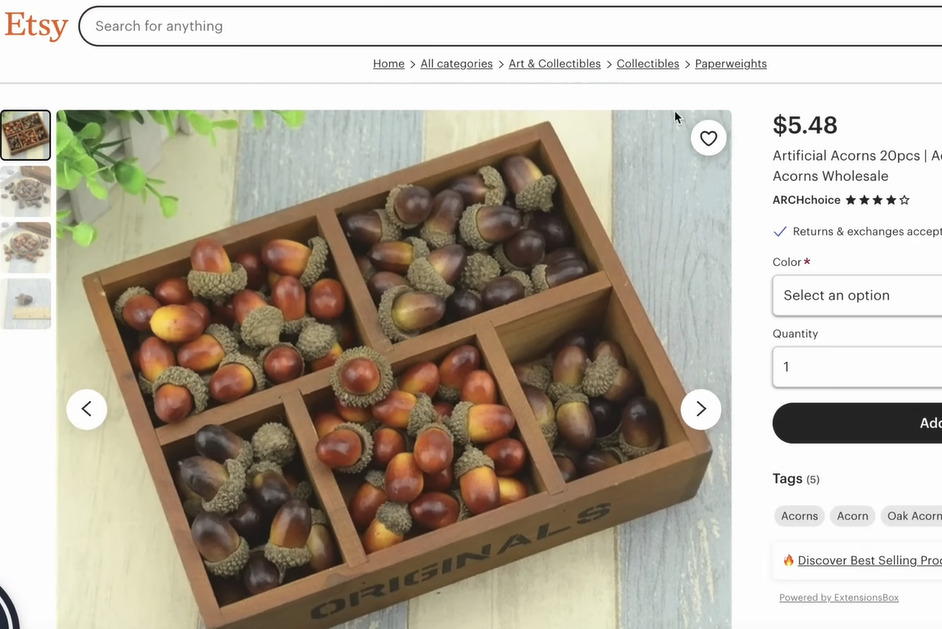 流木や松ぼっくりの他に、ドングリも売られている。