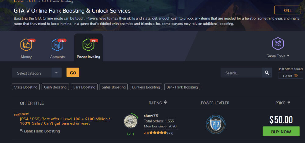 GTAVのゲームも取り扱いがあり、アカウントやゲーム内通貨、ランクが売られている。