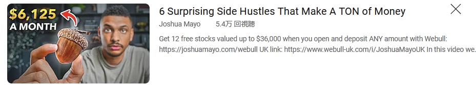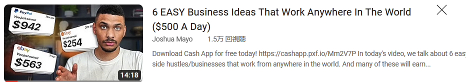 最初に紹介するのは、「Joshua Mayo」さんの『6 Surprising Side Hustles That Make A TON of Money』という動画だ。