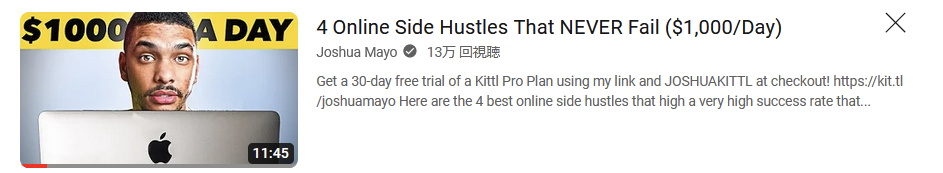 次は『4 Online Side Hustles That NEVER Fail ($1,000/Day)』という動画から、目新しいアイデアだけサクっとピックアップしていく。