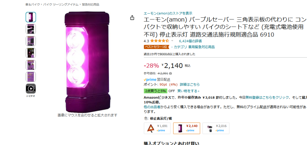 バイク用・追加の発煙筒代わりに「パープルセーバー」というアイテムもあるぞ。