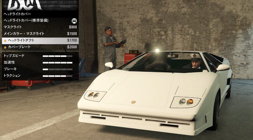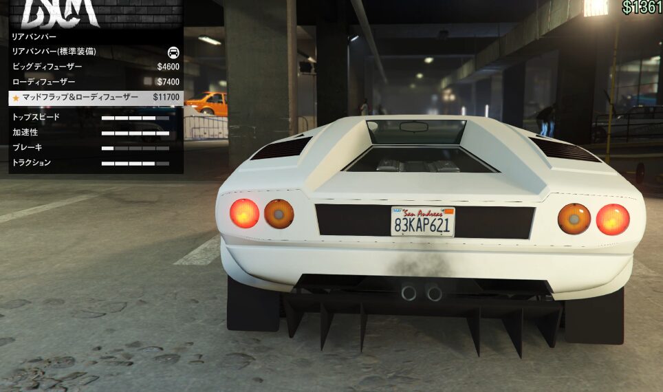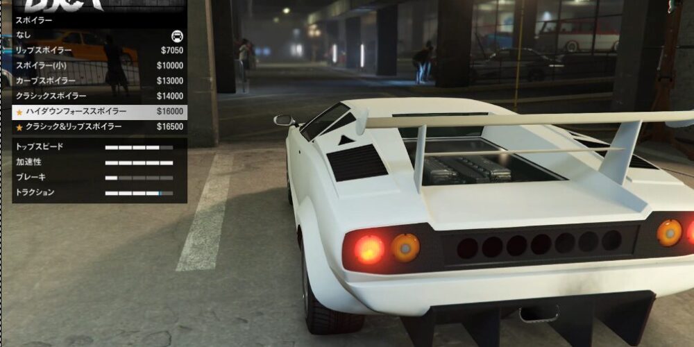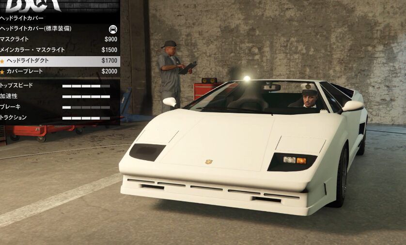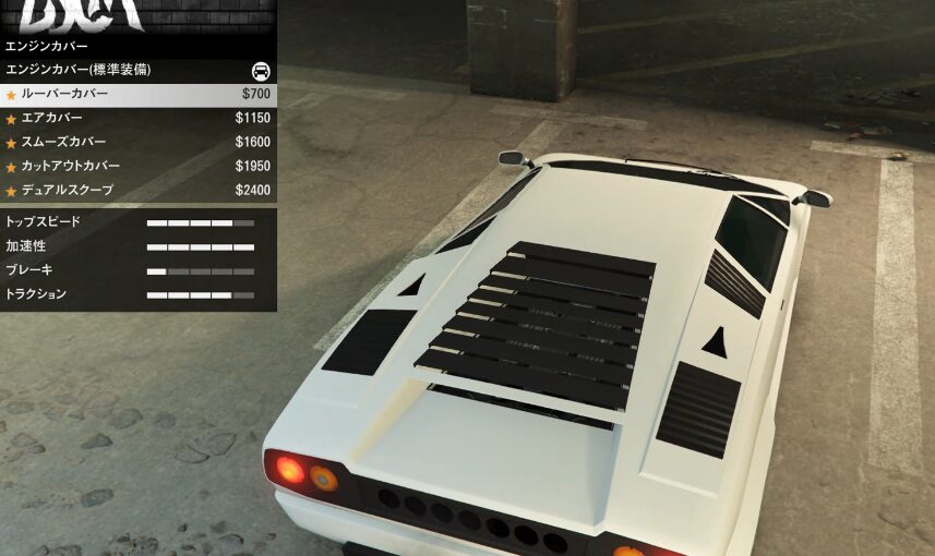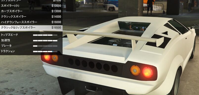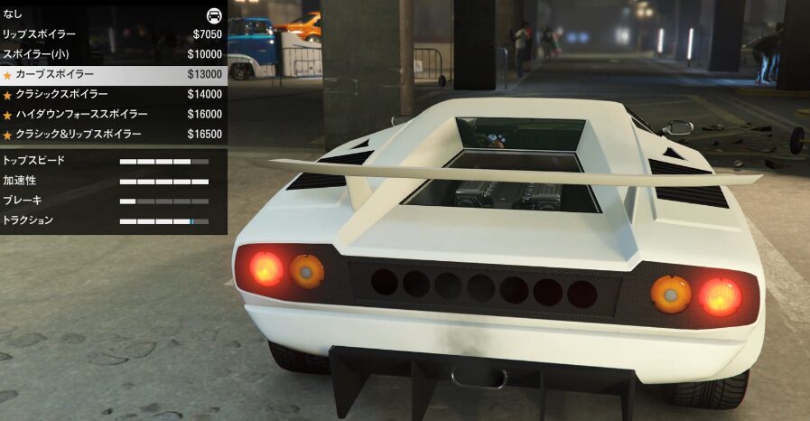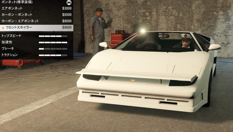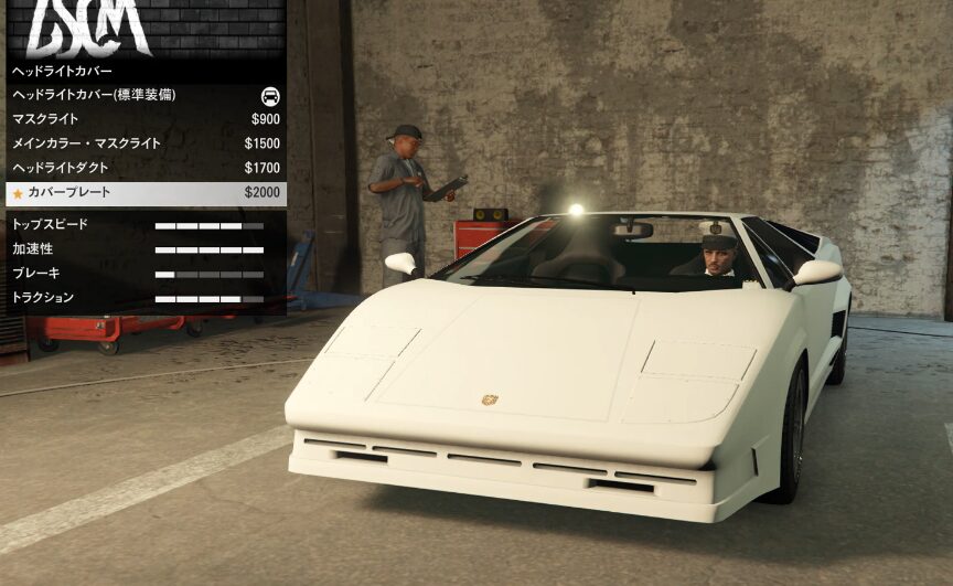 とりあえずカスタム項目の紹介をしていこう。ちなみにボディーペイントは無い。ストライプの一本も無い。