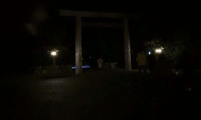 冬の年末年始の深夜の伊勢神宮は真っ暗闇だ。