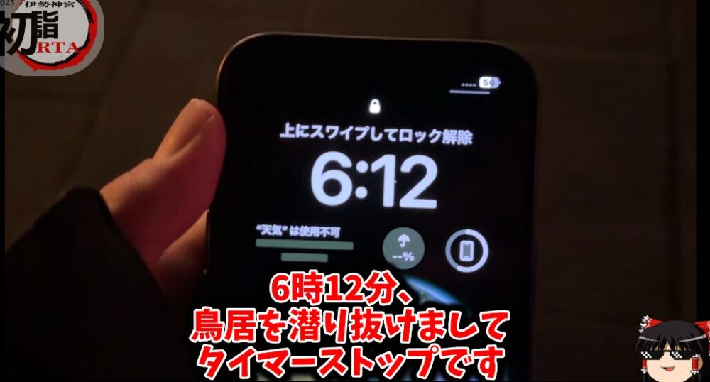 6:12 宇治橋鳥居にてタイマーストップ
