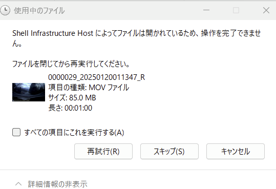 Windows11でファイルを削除しようとすると、〇〇によってファイルが開かれているため削除できないと表示されることがある。