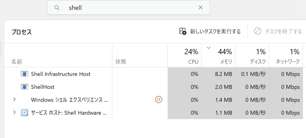 タスクバーが一時非表示となったが、20秒ほどで再起動して復帰した。