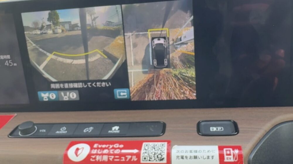 左側のワイパースティック先端のボタンを押すと、実は装備されているアラウンドビューモニターが表示可能。