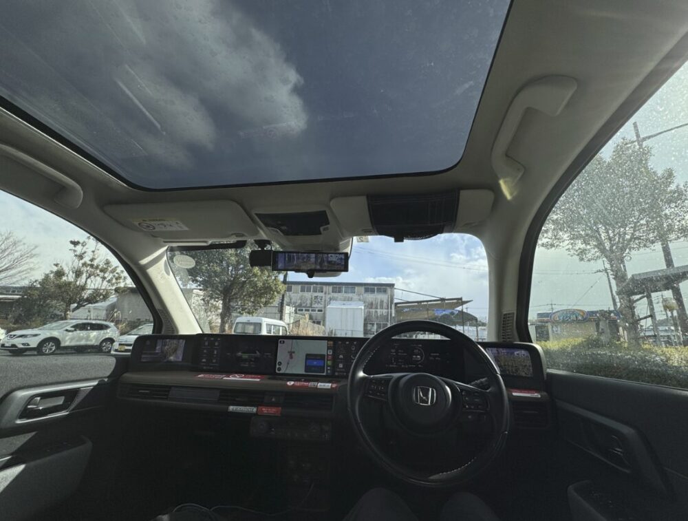 私が借りた個体はガラスルーフを搭載していたが、広角で撮ると実物以上の解放感だ。