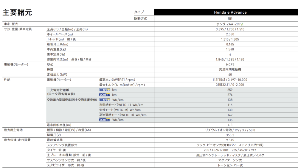 公式サイトの諸元表を貼り付けておく。