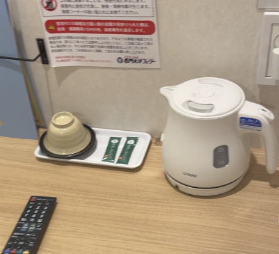 電気ポッドも用意されているため、喉が乾いたらその都度お湯を沸かして飲むこともできる。