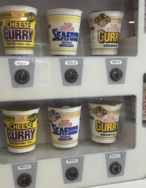カップラーメンとセブンティーンアイスの自販機が24時間利用可能だが、可能だが、カップラーメンは1個310円。さすがにちょっと高くない…????