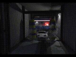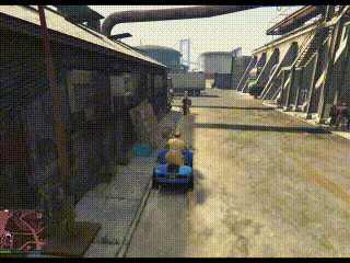 極秘貨物の倉庫や各種施設の入り口には青色のマーカーがあるが、車から飛び降りて転がったままでも入ることが可能だ。