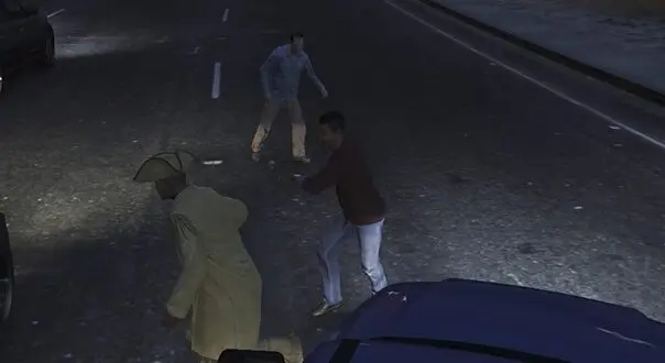 このゲームのNPCは銃撃や攻撃にビビると暴走するが、渋滞を引き起こした状態で殴られると面白いことになる。