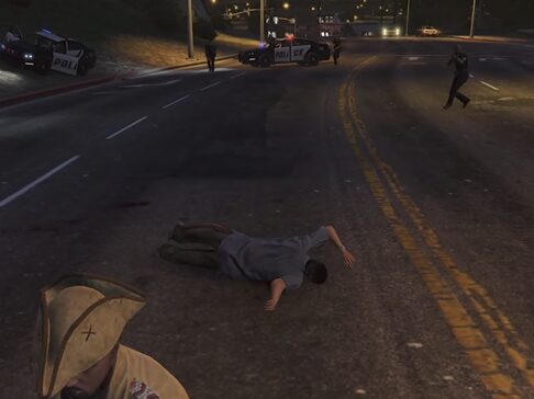 警察に発砲されている最中に、警察とプレイヤーとの間に市民が来るようにすると流れ弾が当たることがある。