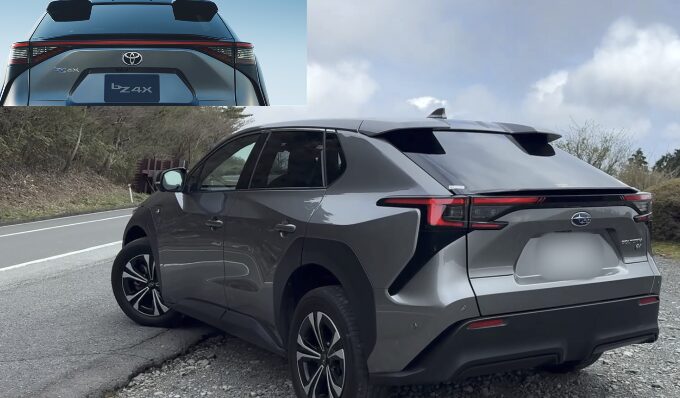 bz4xと基本的に同じ造形だが、左右を繋げて近未来感を出そうとするトヨタとコの字型のラインを用いるスバルの違いがある。