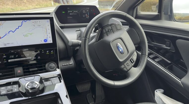 上位グレードになるとオレンジの内装が選べるが、ベースモデルではbz4xとの違いがほぼ見当たらない。