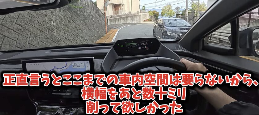サイズのせいで乗りやすくはないが、視点の高さとボンネットの見切りの良さによって狭い道でのすれ違いにはあまり苦労しない。ラクとも言い難いけど。