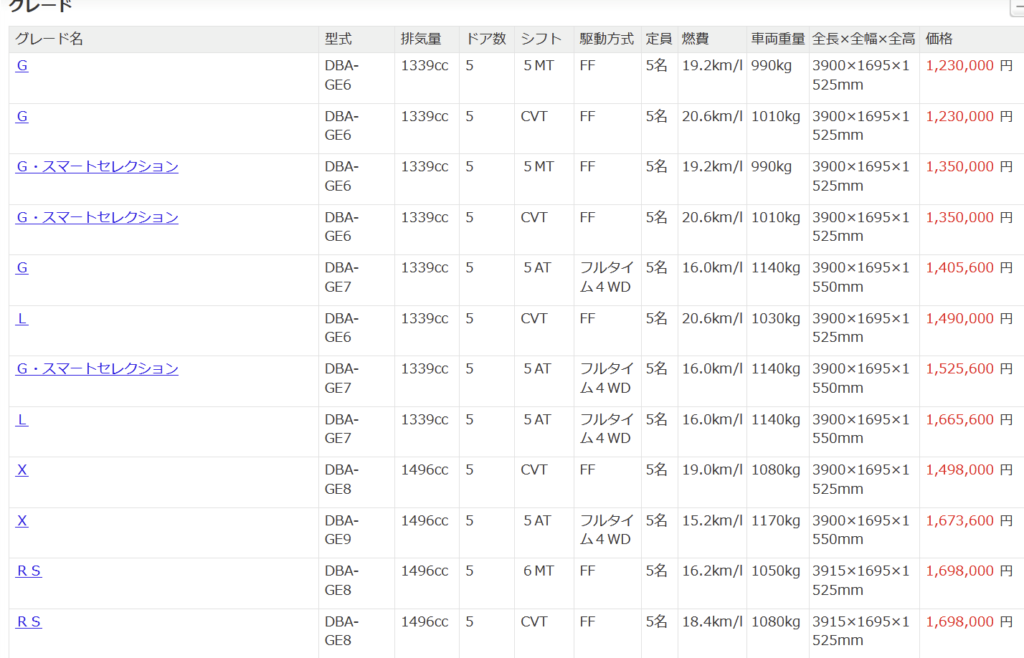 🚗 2011年式 ホンダ フィット 各グレード比較表(新車価格+装備)