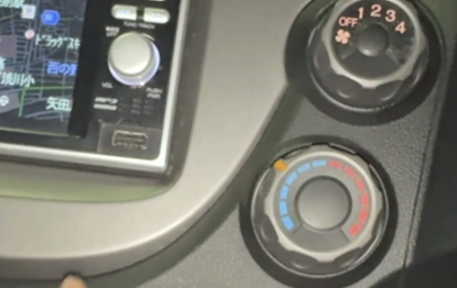 マニュアルエアコンだが、ダイヤル内部の電球が切れたのか最初から付いていないのか、夜間には何も見えない。