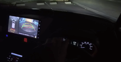 ステアリングのボタンを押せば走行中でも両方のタイヤの足元を照らすカメラに瞬時に切り替わるため、ただですら細いボディーがすれ違いをさらに簡単にさせる。