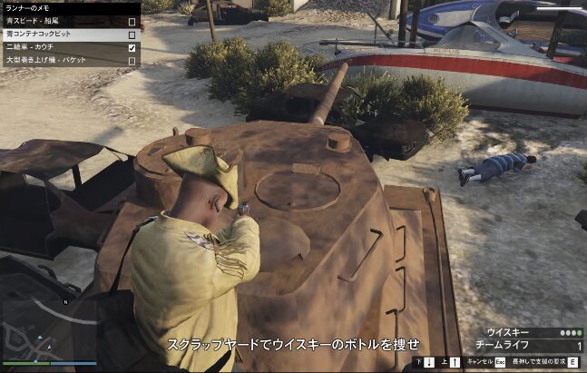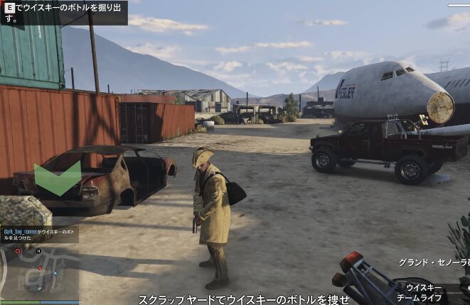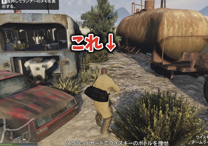 犬に餌やりをした後、ブレイン群の刑務所の近くのスクラップヤードでウイスキーのボトルを探すミッション。