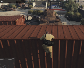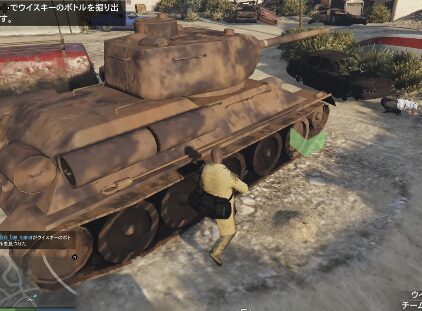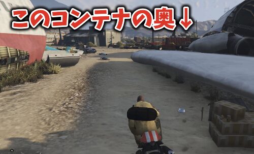 青い飛行機の北側のコンテナを乗り越えるとT-34-85という戦車の残骸があるのだが、その右側。