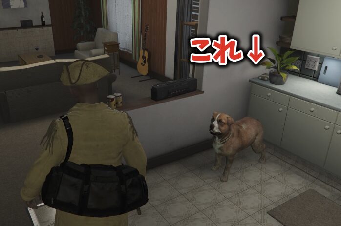 犬の骨マークの場所にあるエサ皿にエサを入れると、犬を一匹無効化できる。