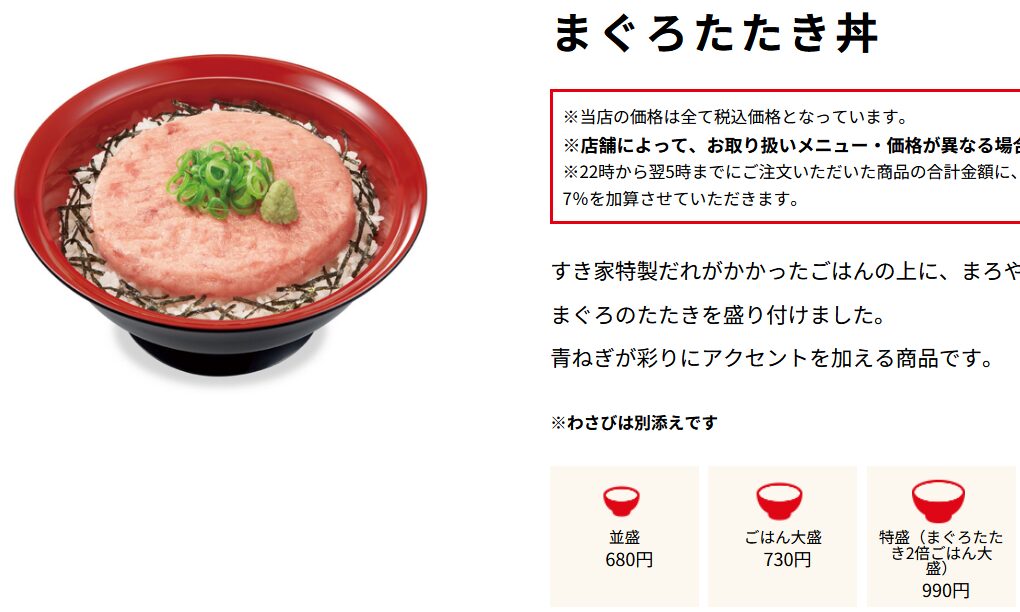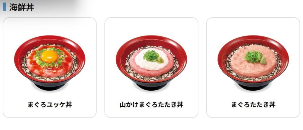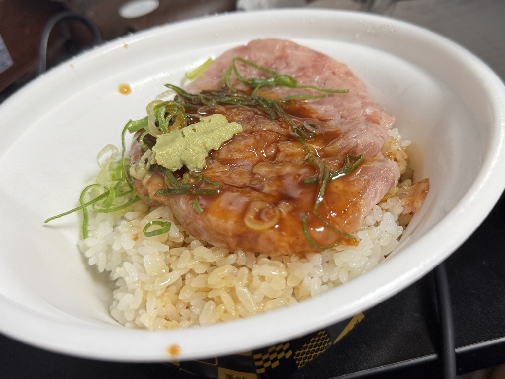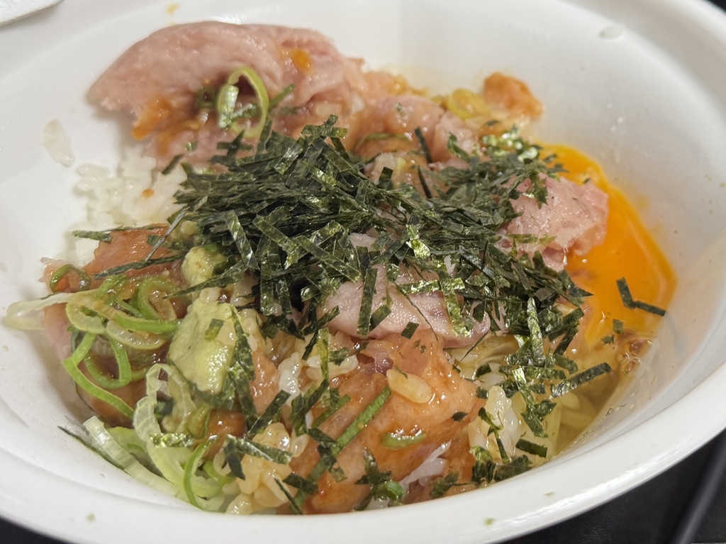 まぐろのたたきは見た目の通りの味だが、牛丼の肉々しいジャンキーな触感と比べると主張が控えめ。