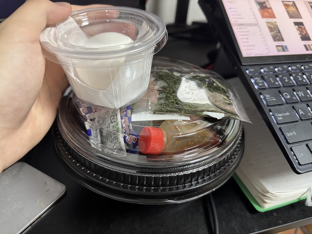 ねぎとわさびに加え、コチュジャンたれとタマゴが加わる。