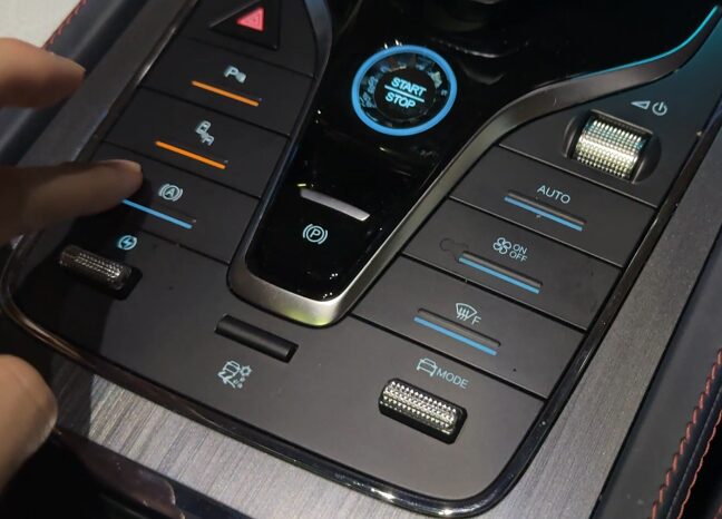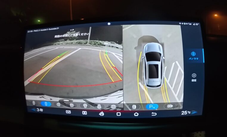 右側でエアコンのオンオフや曇り取りが出来たり、左側でブレーキホールドやパーキングセンサーの操作ができる。テスラとは異なり、ちゃんと物理ボタンを残してくれているのだ。