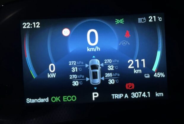 ドライバーディスプレイのカスタマイズ項目は少ない。kWを馬力に変えることもできないし、電費計の単位を変えることもできない。