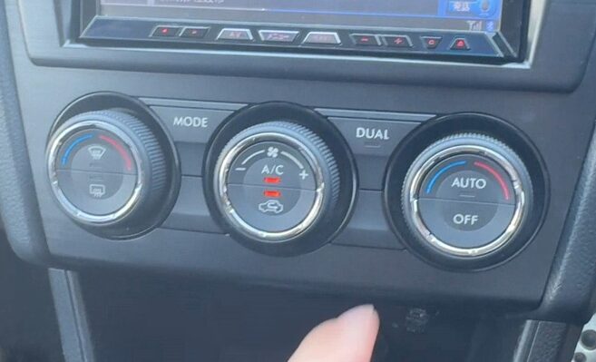 エアコン操作系は三連の丸。単純明快で迷いようがない使い勝手。素晴らしい。