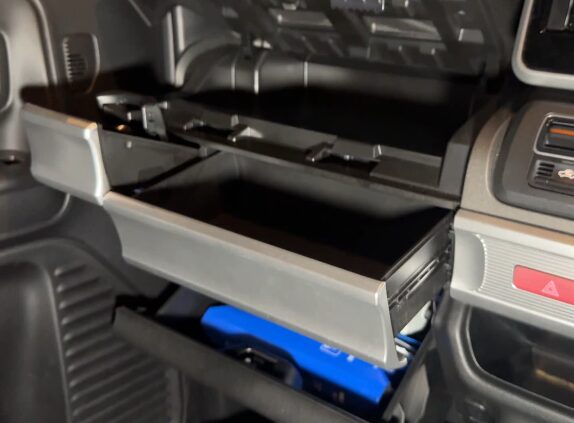 助手席側の収納は上下に中央と玉手箱のように開く。エアバッグはどこにあるのだろうか。