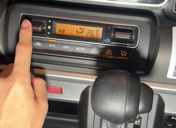 エアコンも物理。少し奥まって位置にはあるが、走行中の操作にもそこまでストレスはない。