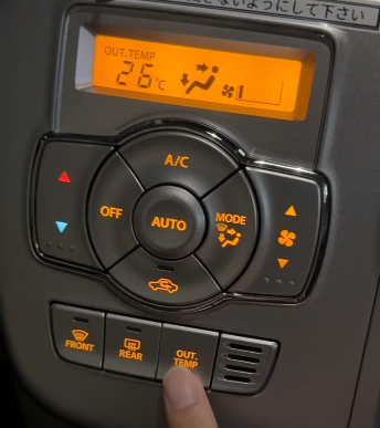 外気温を知るためには「OUT TEMP」ボタンを押す必要がある。