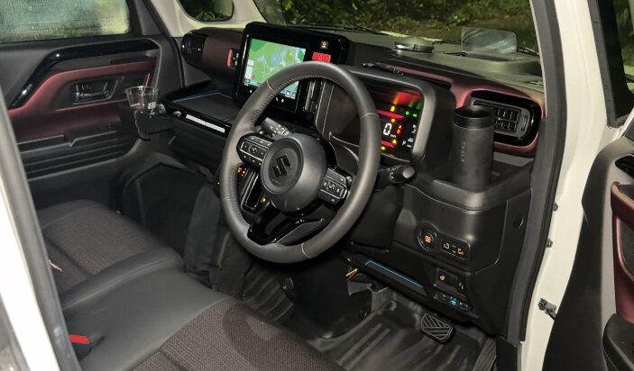 アルファードを新車価格200万円の軽自動車に落とし込もうとしたように見える一台だ。