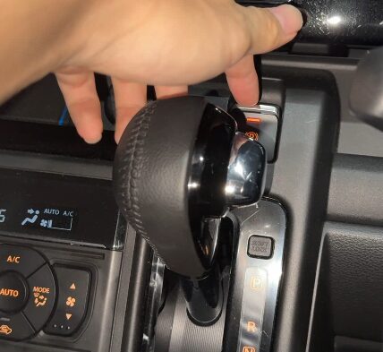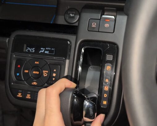 電動パーキングのスイッチはシフトノブがPの位置にあるときは触りづらいが、連動して作動するタイプなので以下の画像のような操作は不要。