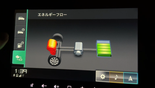 Dレンジの下は「M」となっており、回生ブレーキなどの操作はパドルを引いて行う。