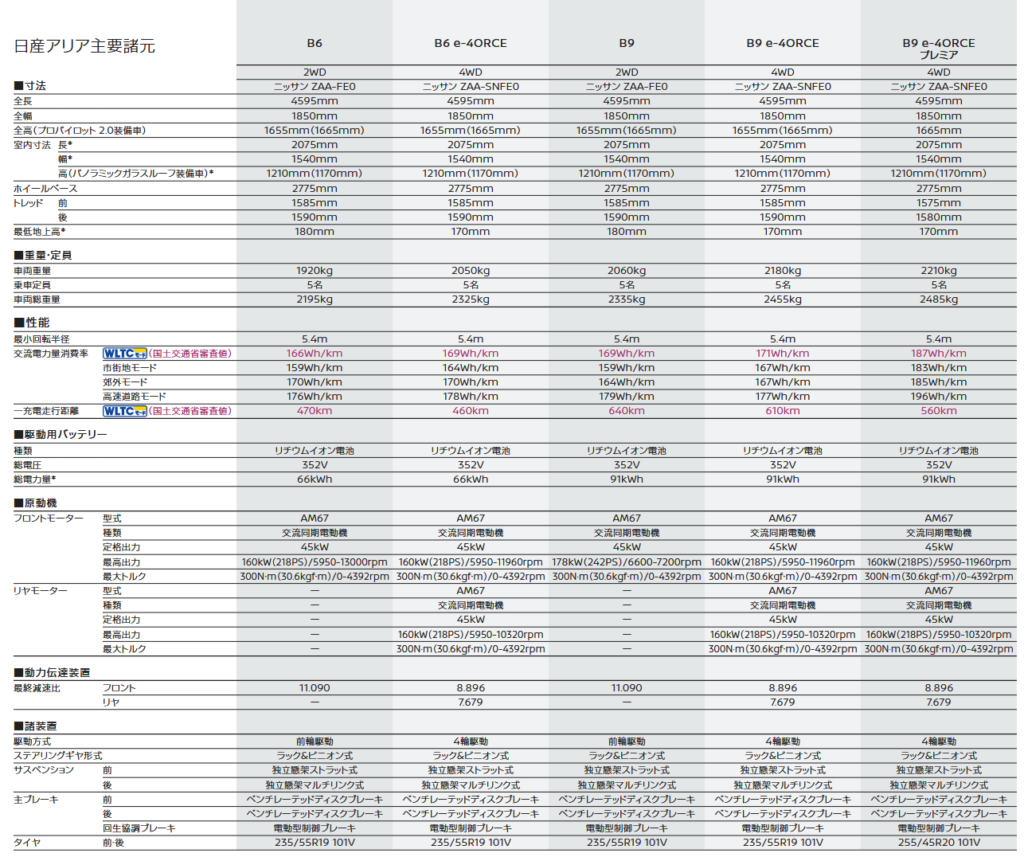 | B6 2WD | 66kWh | FWD | 160kW(218ps) | 300Nm | 約1,920 |