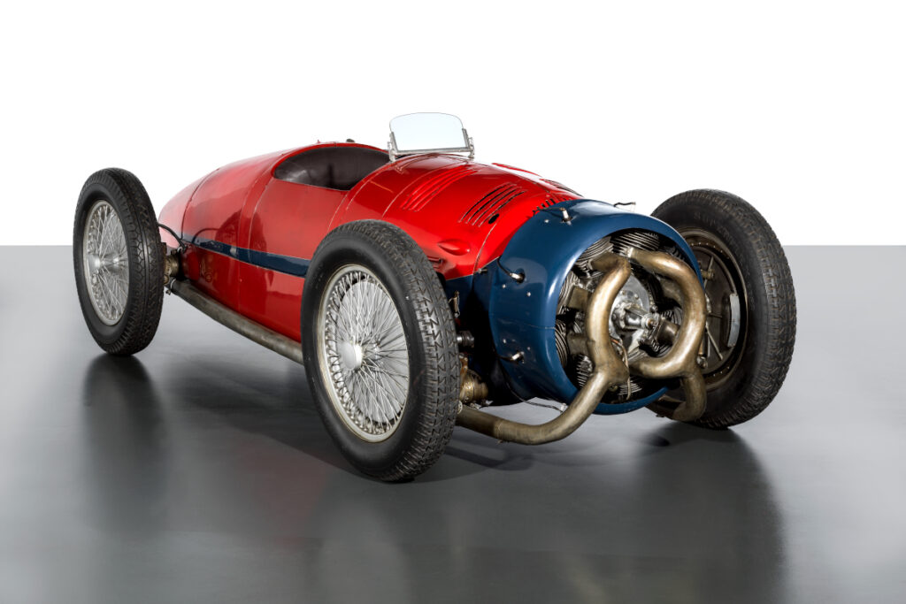 - 当時のGPレースでは「ストレート型の直列8気筒」が主流でしたが、航空用の星型エンジンを自動車に転用する挑戦として企画。