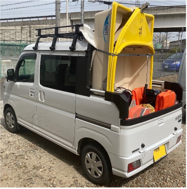 釣りに使う小型ボートを立てて載せているようだ。