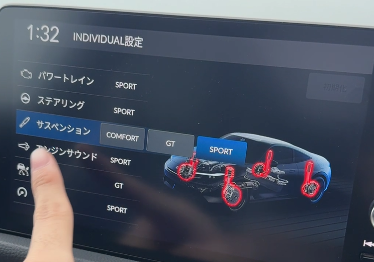GTモードはその中間。コメントするのは難しいが、ダルすぎると感じることもなく硬すぎると感じることも無いため、INDIVISUAL設定では「GTモード」を選んでおくと無難だろう。