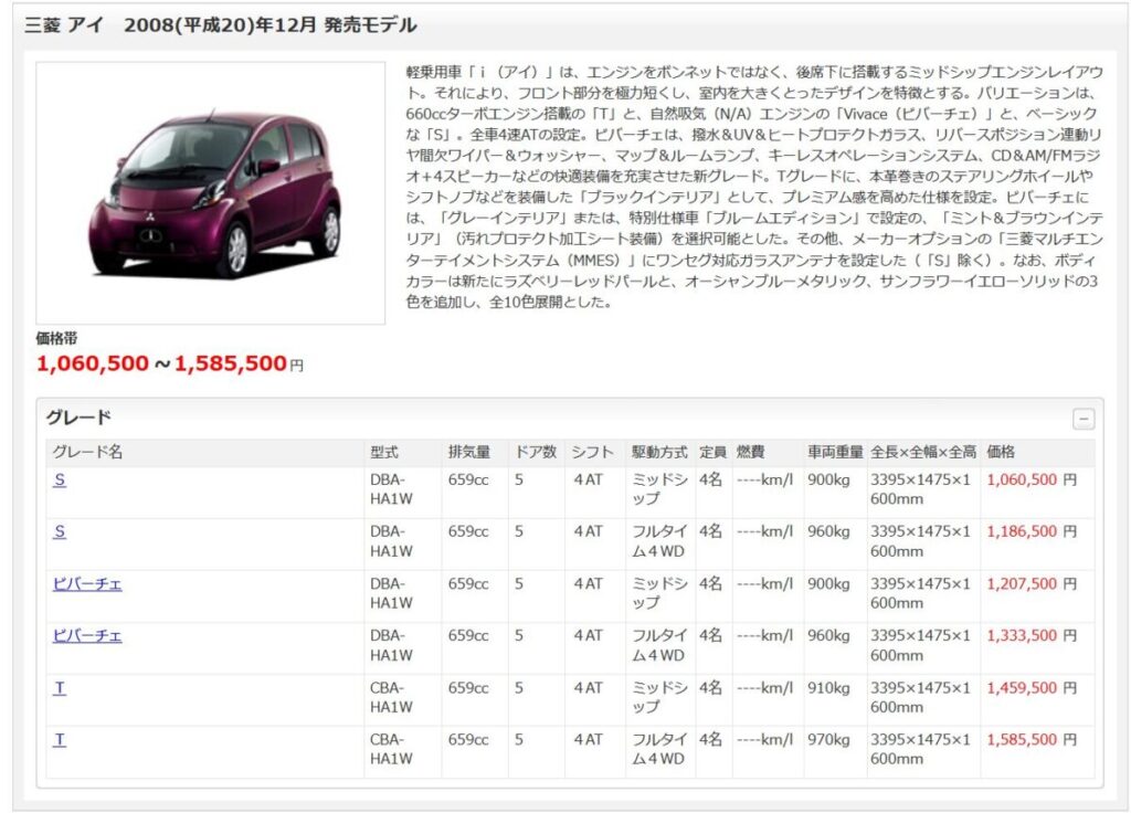 ちなみにガソリンのほうの三菱 アイは、新車価格100~160万円くらいの価格帯のクルマだ。