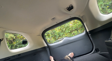 二列目の座面を引っ張り出すことで完全にフラットな荷室を作ることができる。