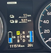 エンジン音は聞こえてこない程度に静かだが、電池が尽きると燃費走行に努めてもリッター15km程度しか走れない。プリウスの半分の燃費性能。