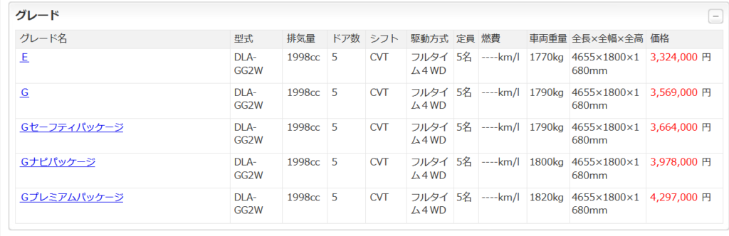 グレード・価格など