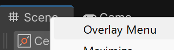 シーンのタブのところを右クリックしてオーバーレイメニューをだす。