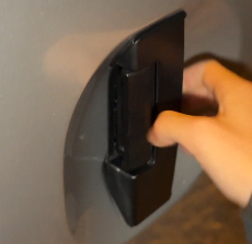 スライドドアのラッチは開ける側にしか付いていないため、ドアを閉じる際に逆側に力を掛ける必要がある。