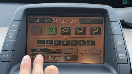 エアコンはナビ内からタッチして操作するもの。正直言って操作性はよろしくない。